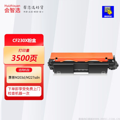 商品名称:会智选30X打印黑色碳粉盒(CF230X)/鼓粉分离/3500页 适合惠普M203d/M227sdn打印机