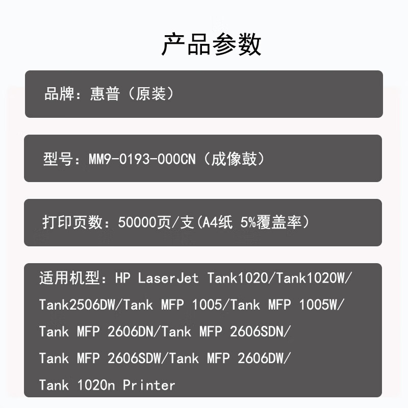 商品名称:惠普158A/158X硒鼓(MM9-0193-000)5万页适合 Tank1020/Tank2506DW/Tank MFP 1005