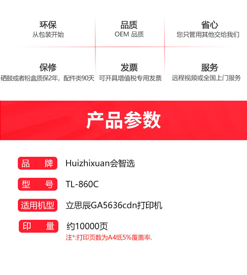 商品名称:会智选蓝色粉盒TL-860C/1万页 适合立思辰GA5636cdn彩色激光A3单打印机
