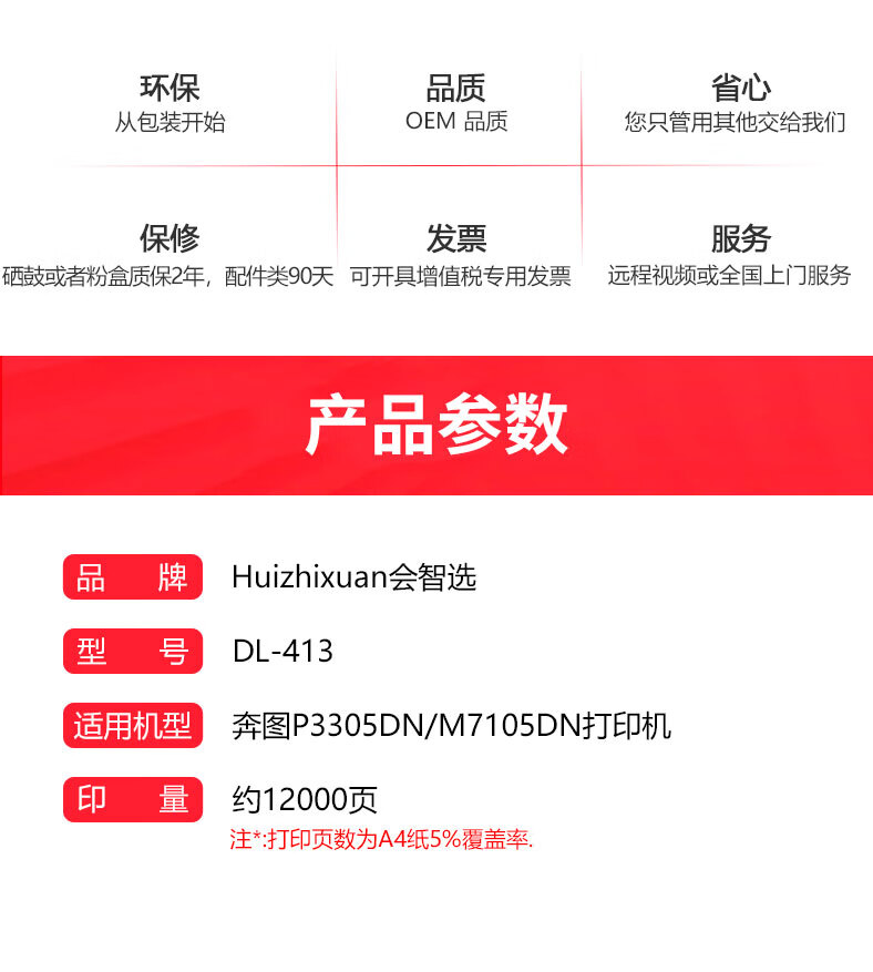商品名称:会智选硒鼓组件DL-413印量12000页 适合奔图P3305DN/M7105DN保密机