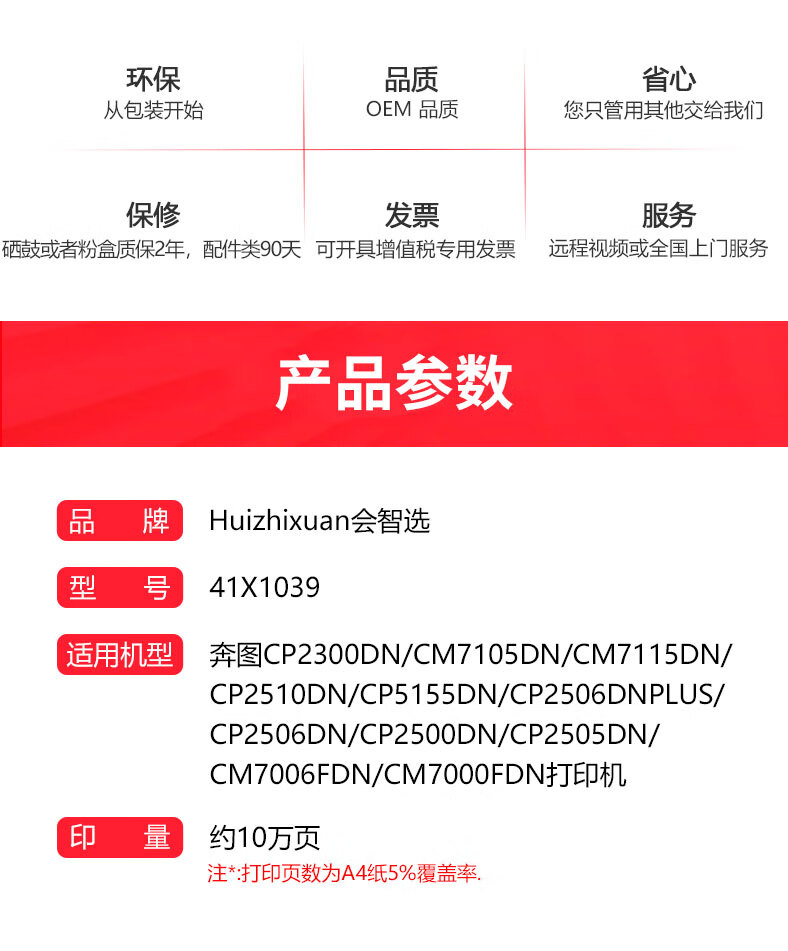 商品名称:会智选转印带组件41X1039 适合奔图CP2300DN/CM7105DN/CM7115DN/CP2510DN/CP5155DN/CP2506DN PLUS等打印机