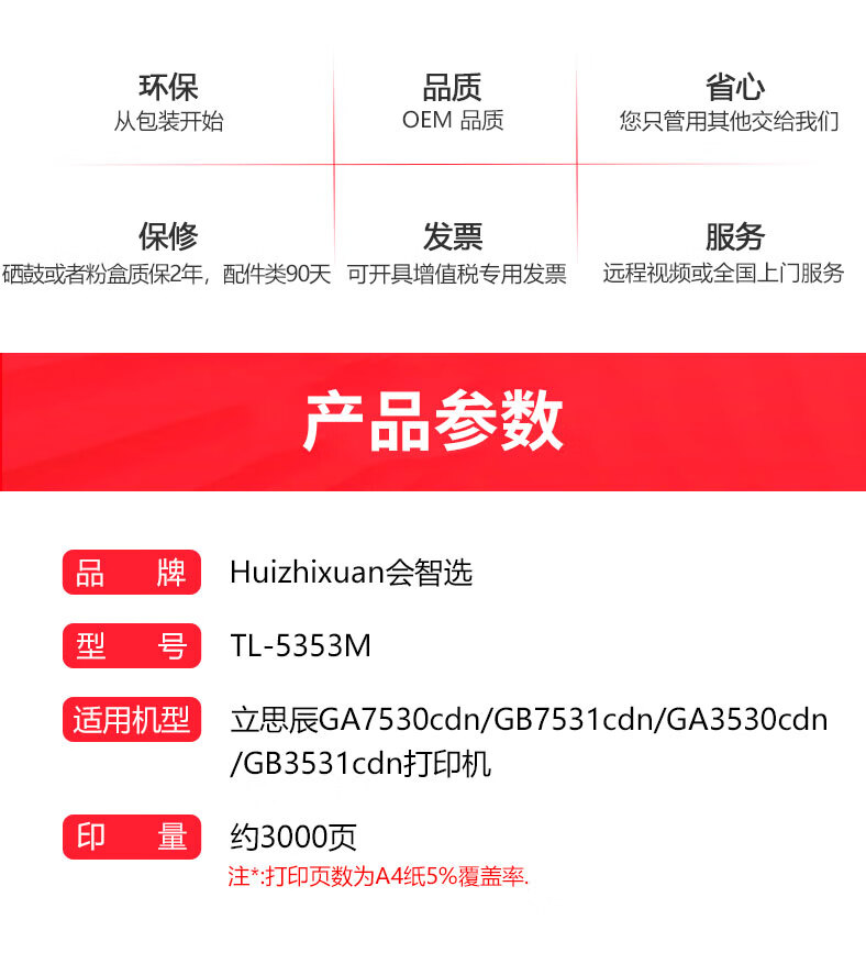 商品名称:会智选墨粉盒(TL-5353M)品红色/3000页 适合立思辰GA7530cdn/GB7531cdn/GA3530cdn/GB3531cdn打印机