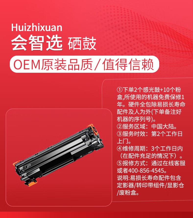 自营会智选88A打印硒鼓(CC388A)黑色/鼓粉一体/1500页 适合惠普P1007/P1008/1106/1108/M126a/M128fw/M226dn等打印机