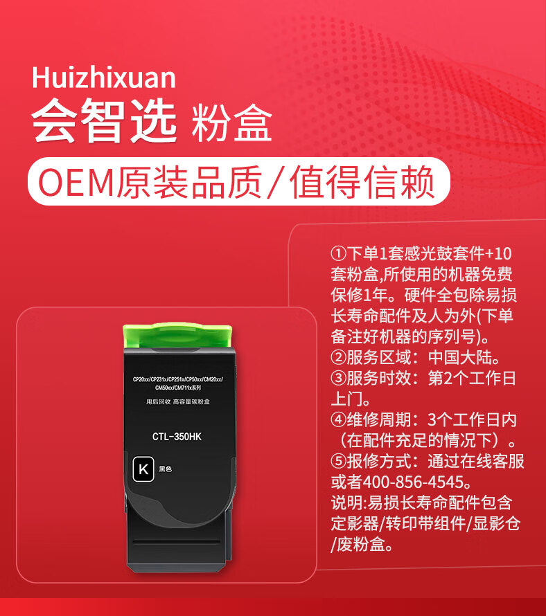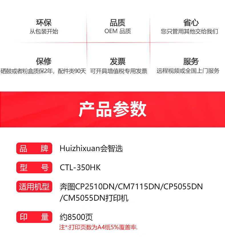 商品名称:会智选黑色粉盒CTL-350HK 适合奔图CP2510DN/CM7115DN/CP5055DN/CM5055DN/CP5052DN/CM5052DN打印机