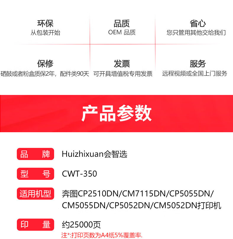 商品名称:会智选废粉仓CWT-350 适合奔图CP2510DN/CM7115DN/CP5055DN/CM5055DN/CP5052DN/CM5052DN打印机